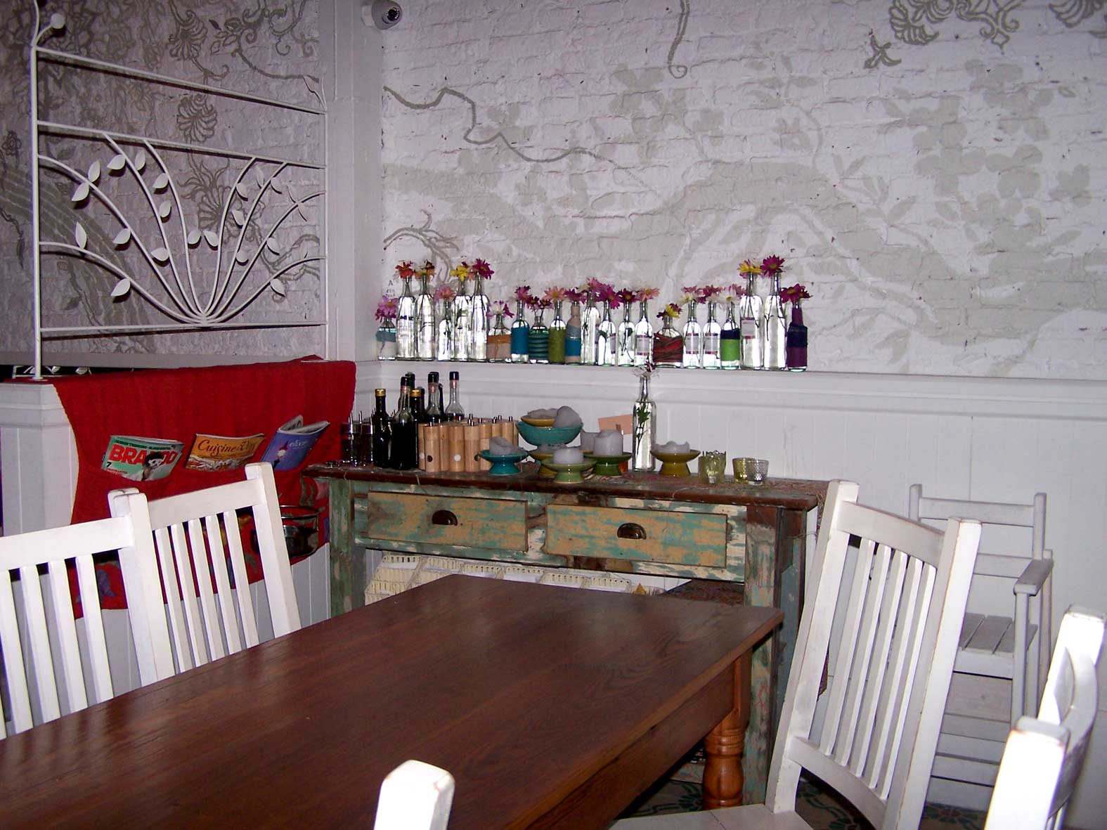 O salão do restaurante é muito interessante, evoca um pouco Nova Iorque, com paredes rústicas mas com bonitos detalhes pintados…